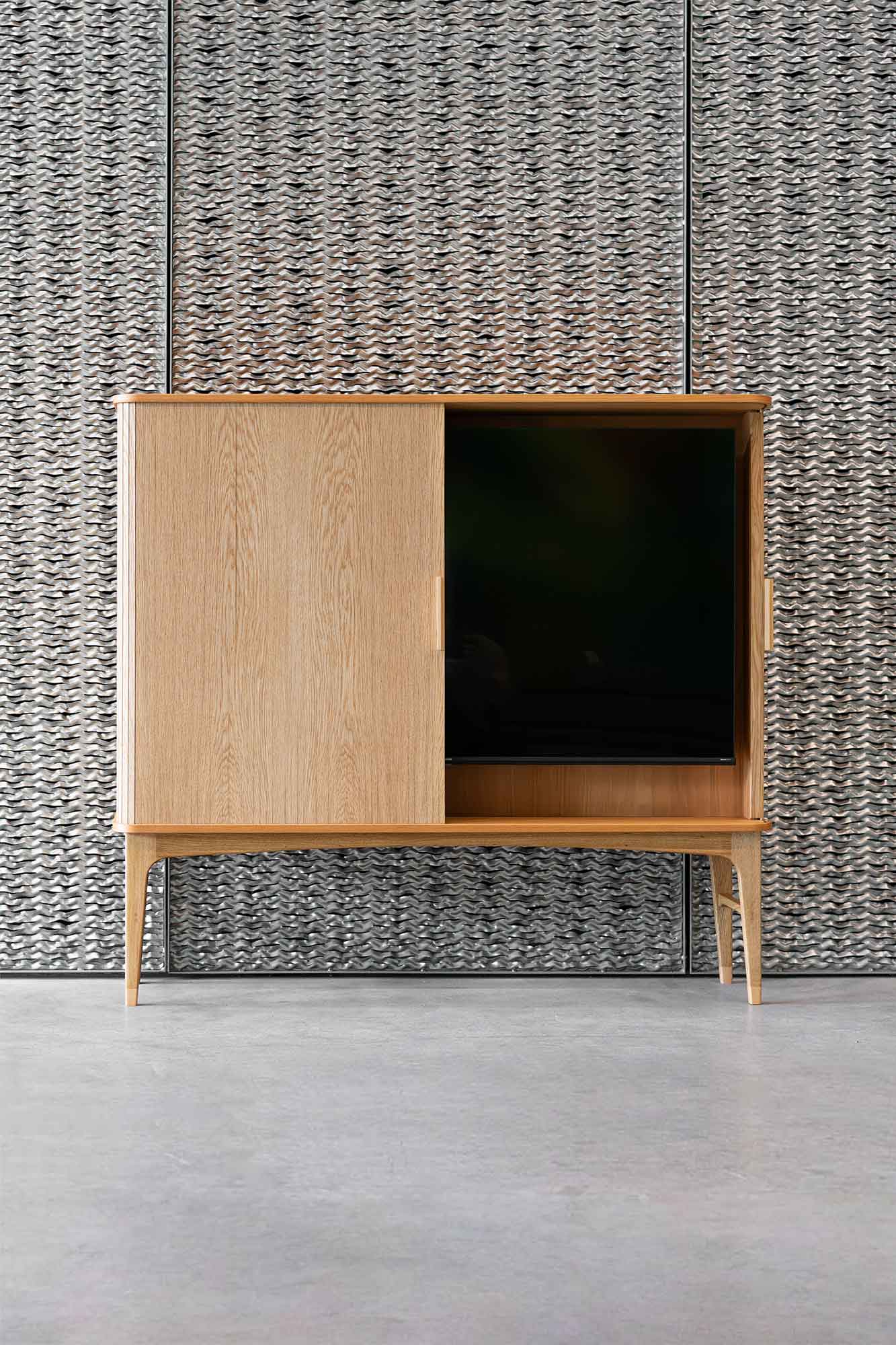 SKJUL er et tv-møbel og jalousiskab i ét – designet og udført af den aarhusianske snedker Troels Schack.
